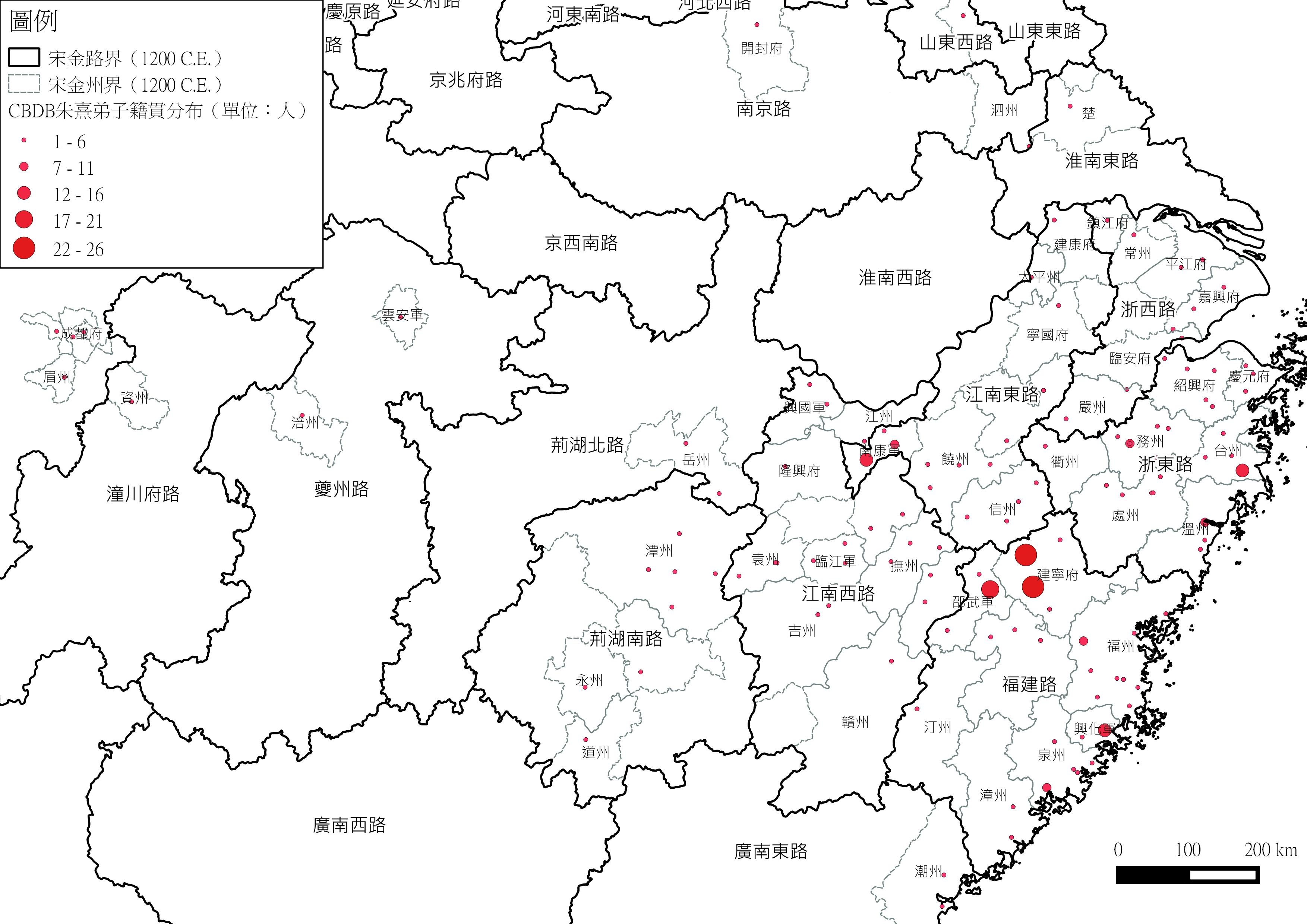 記錄者與朱熹弟子的地理分布比較(毛元亨製)